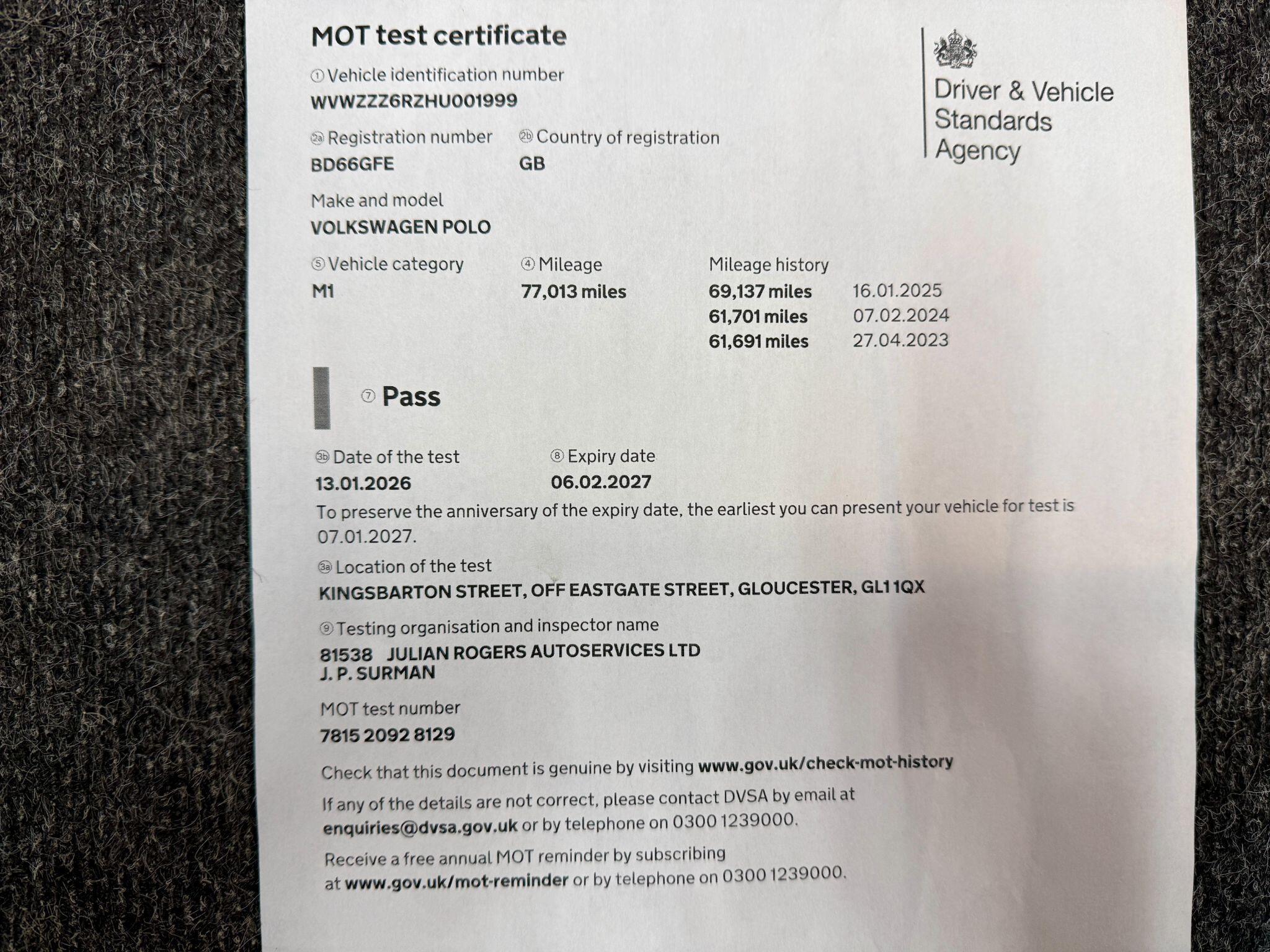 MOT Expires:05/02/2026